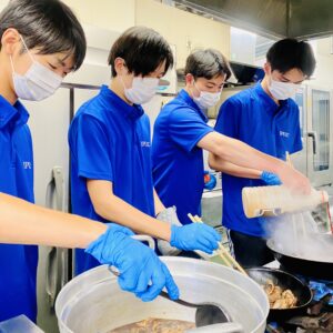 この日のために朝から準備をしてくれたのは、扇野ゼミ所属、元硬式野球部の4年生、矢野君、前田君、安部君と前期のマーケティング総論を受講中の1年生、赤崎君と村上君。