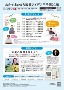2025年9月23日(火・祝)、岡山市の下石井公園で開催された岡山青年会議所主催「政策アイデア甲子園2025」において、岡山県立東岡山工業高等学校の生徒さんと現代経営学科の2年生の赤崎凛君、澤笑生君による混合チームで出場し、6チームのエントリーの中から岡山青年会議所理事長賞を受賞しました。
