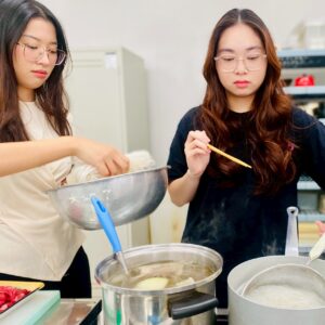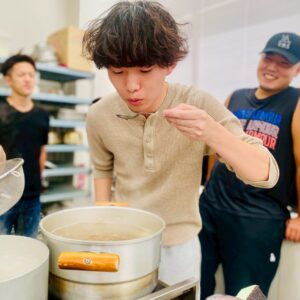 10月9日、調理実習室にゼミ生が集まり、アインさんとゴックさんの指導のもと、本場さながらのスープづくりからスタート。キッチンカーで提供することを前提とし、生産性向上と美味しさの両立を探求しながら試作を重ねました。