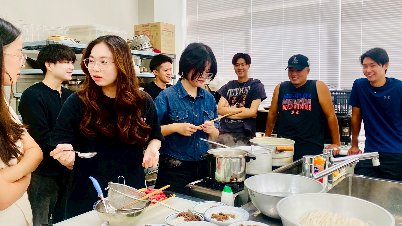今回の牛肉フォーづくりを通じ、ゼミ生たちは「文化を食で伝える」楽しさを実感。岡星寮様のイベントでご利用者様に喜んでいただくために、準備をを進めていきます。