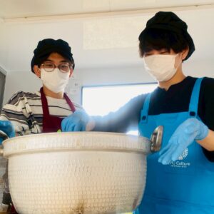 楽しみにしてくださっている岡星寮のご利用者様のために、もっと美味しくできるのではないかとゼミの中で話し合い、出店の1週間前には、ベトナム人留学生の指導のもと、新しいフォーの試作と試食を行いました。