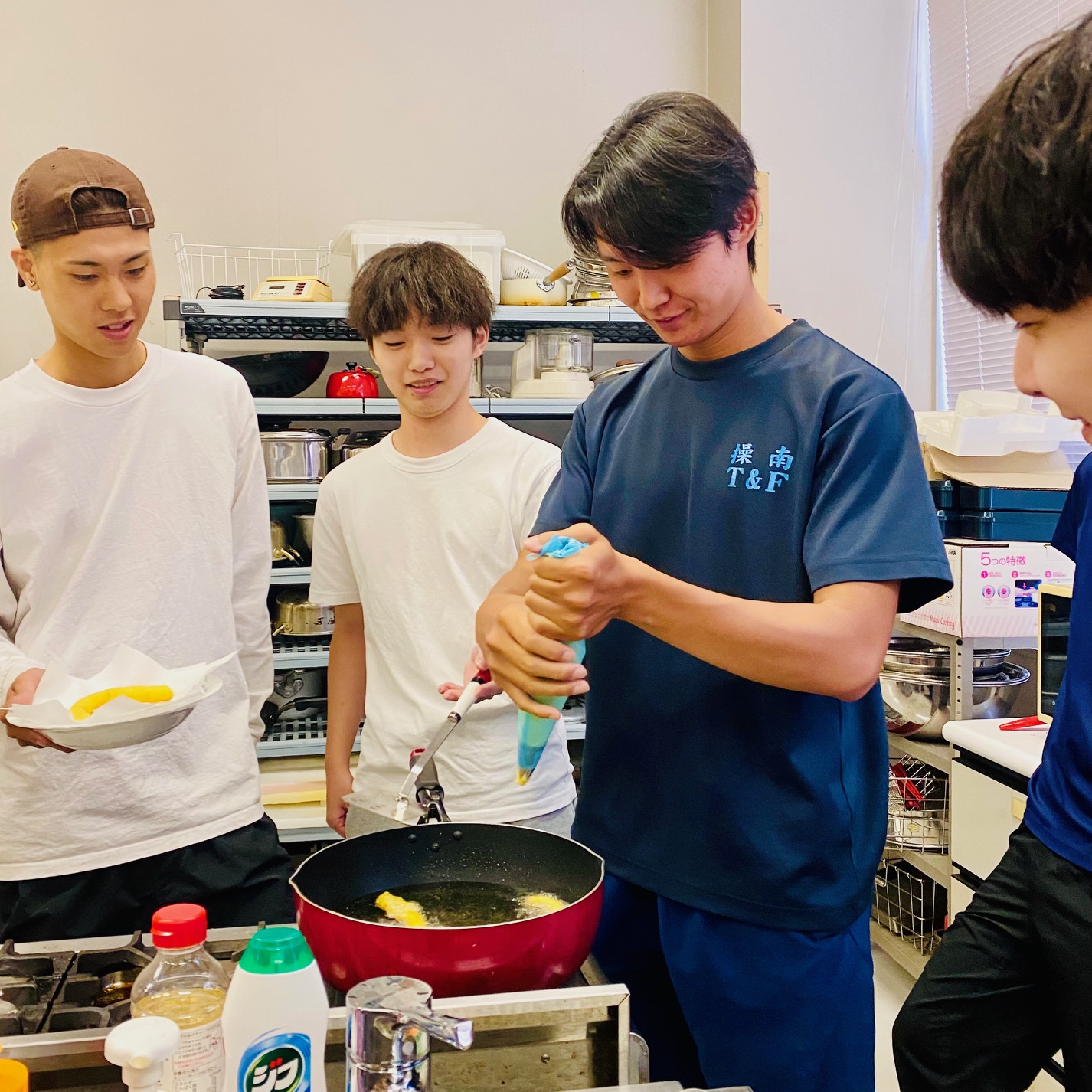 3年ゼミ生たちから「自分たちでオリジナル商品を開発してみたい!」という声があがり、若者に人気のチュロスをベースに、「砂糖醤油味の“和風チュロス」づくりに挑戦することになり、ただいま挑戦中です。